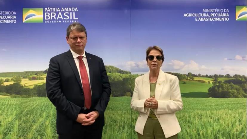 “Ministro Tarcísio está levando esse documento junto do seu time para avaliar, e, em breve vamos passar boas notícias, se Deus quiser, para Ribas do Rio Pardo, que recebe aí a maior fábrica do mundo de celulose da empresa Suzano”, diz a Ministra em vídeo gravado para redes sociais.