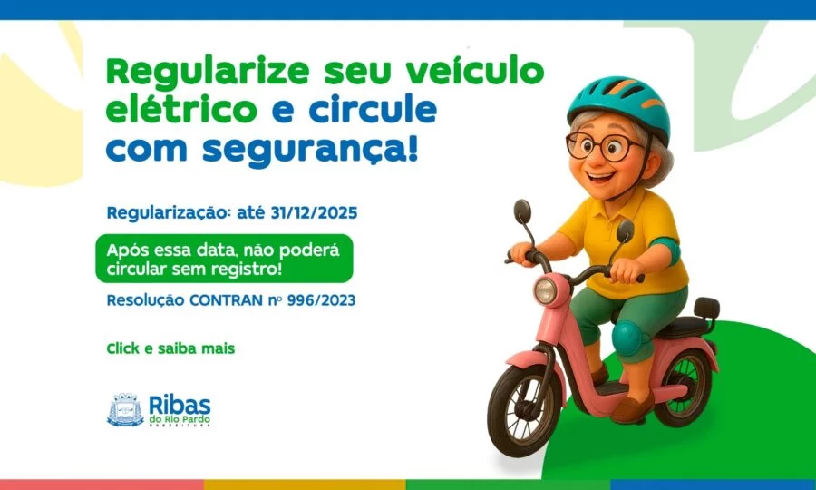 A Prefeitura de Ribas do Rio Pardo, por meio da Secretaria Municipal de Infraestrutura (SEINFRA), iniciou uma campanha de orientação voltada aos moradores que possuem bicicletas e ciclomotores elétricos. O objetivo é destacar a importância da regularização desses veículos para garantir segurança, legalidade e circulação dentro das normas estabelecidas pela Resolução nº 996/2023 do Conselho Nacional de Trânsito (CONTRAN).